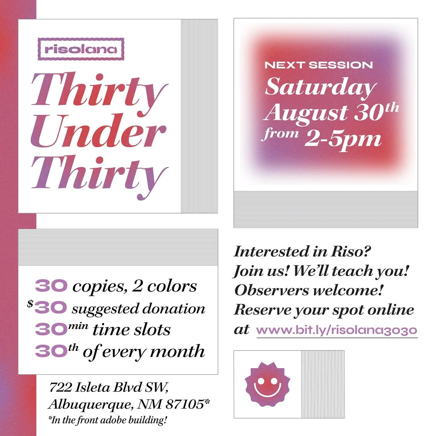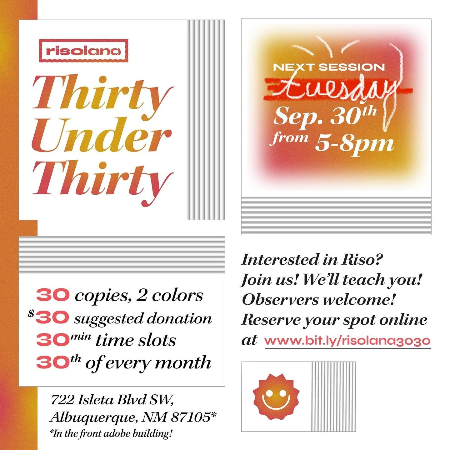 Risolana started in 2021 to fill the need for a publicly accessible risograph studio in the state of New Mexico. We prioritize empowering our community by teaching the process and uses of the risograph over simply providing printing services. We aim to: